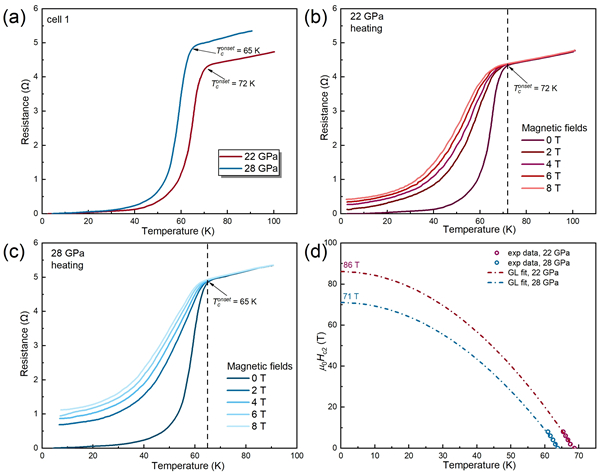 2023年,镧镍氧材料在高压环境下被报道具有零电阻特性,其转变温度约为80 K,这一发现迅速引发了凝聚态物理领域的广泛关注。然而,超导的判定需要同时满足零电阻和抗磁性(迈斯纳效应)两大特征。受限于高压条件下超导体积分数较低,以及传统磁测量技术在高压力环境中的技术瓶颈,镧镍氧材料是否具有迈斯纳效应仍存在争议。为攻克超导抗磁性测量这一难题,研究团队创新性地将金刚石NV色心量子传感与高压金刚石对顶砧技术相结合,自主搭建了基于固态色心量子传感的高压低温磁探测系统,实现了对La3Ni2O7−δ单晶局部抗磁性的原位高灵敏度检测。进一步通过将该技术与四探针电输运测量结合,研究人员在同一块单晶样品上同步观测到存在零电阻和迈斯纳效应,为La3Ni2O7−δ的超导属性判定提供了相互印证的双重实验证据。