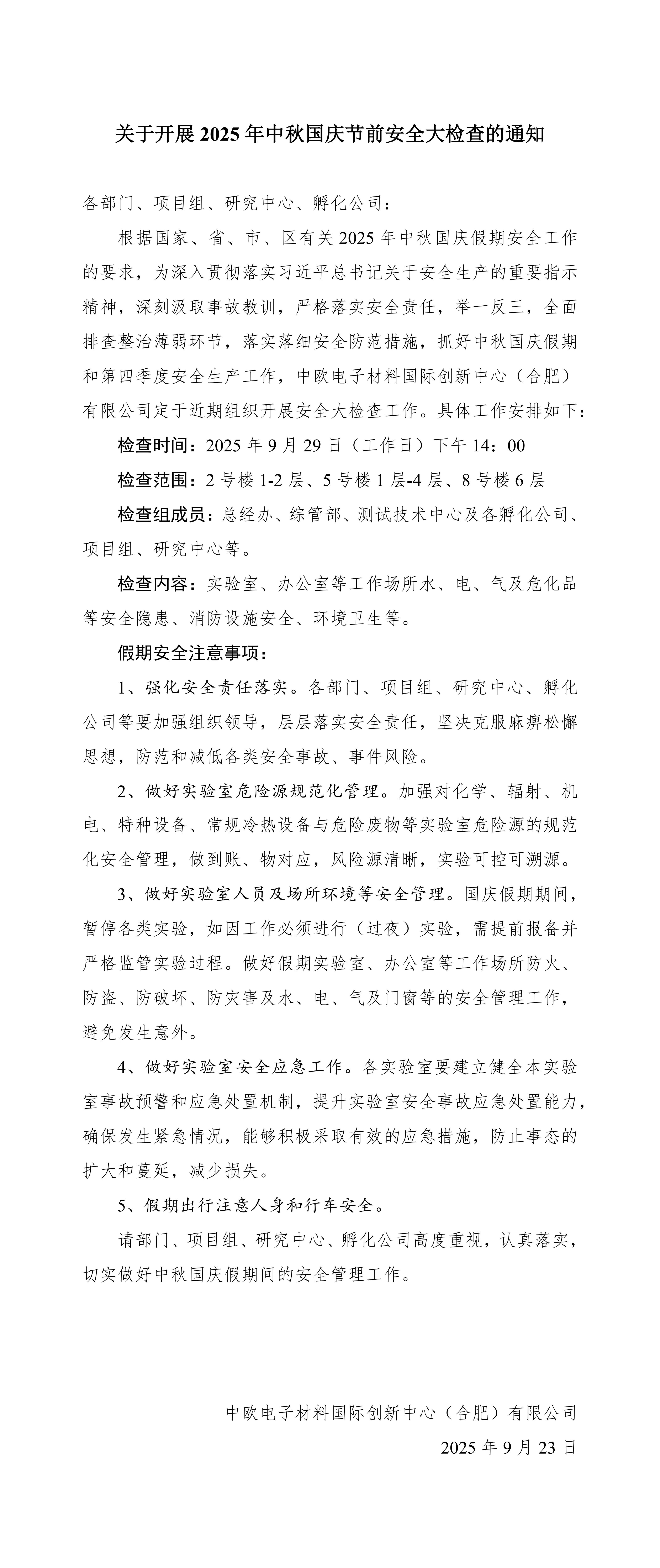 万象城(中国)开展2025年国庆节前安全大检查的通知